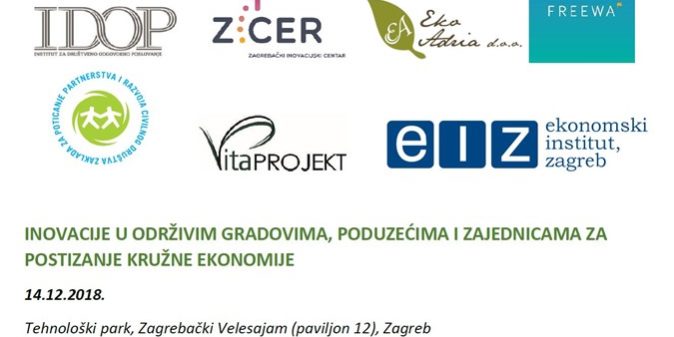 Institut za društveno odgovorno poslovanje organizira okrugli stol pod nazivom Inovacije u održivim gradovima, poduzećima i zajednicama za postizanje kružne ekonomije. Okrugli stol održat će se 14.12.2018. s početkom u 09:30 sati u Tehnološkom parku Zagrebačkog Velesajma. Partner u organizaciji eventa je Zagrebački inovacijski centar – Zicer.